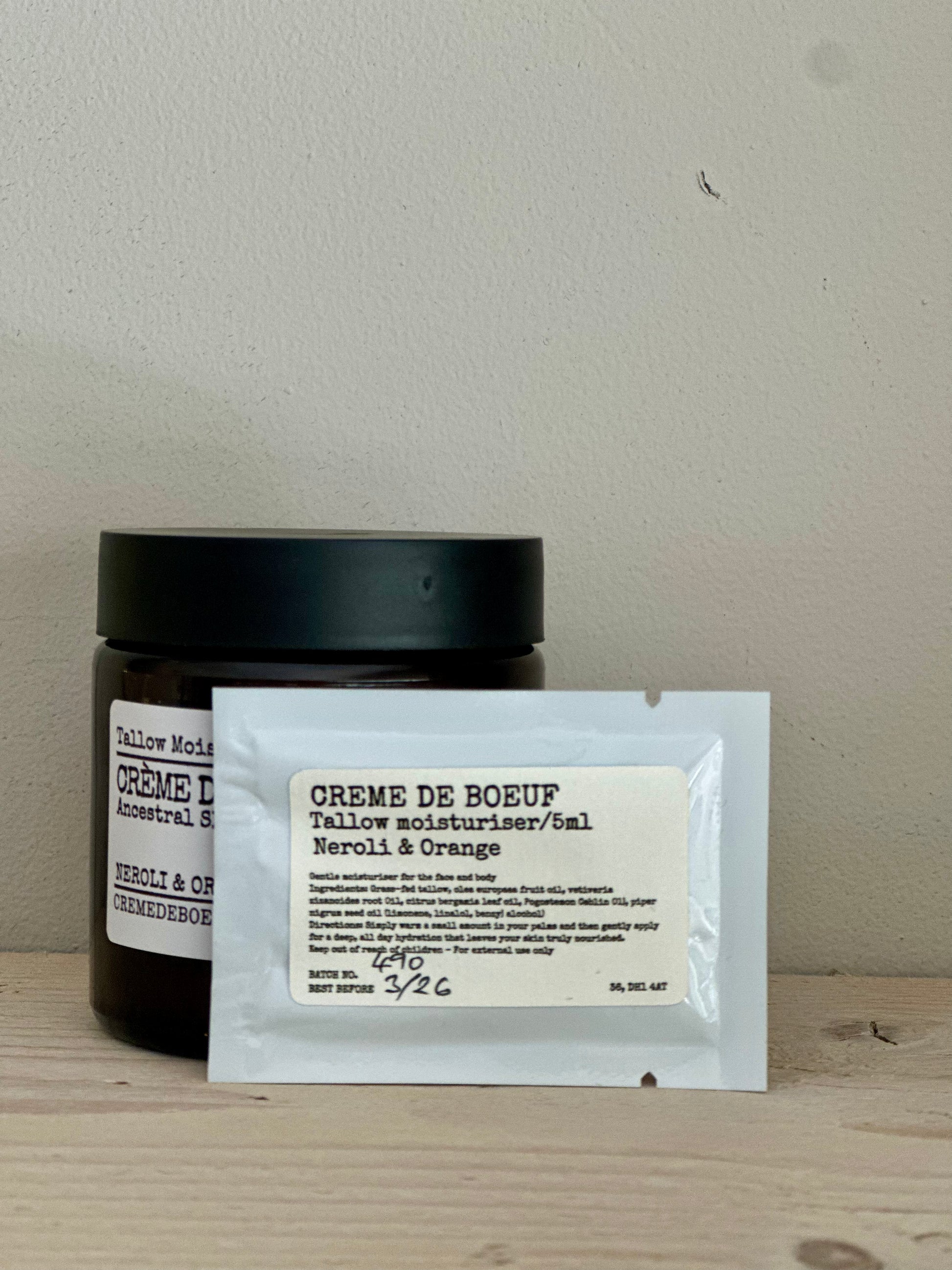 I have been researching Tallow for eczema for a while now. Was going to buy on Amazon (my go to for all things) but decided to search the UK to patronise local businesses. It was then I discovered Crème de Boeuf. The deciding factor was the refillable pack which I bought as I didn't want my first purchase to be a broken container. It would be convenient to carry and easy for the postman to deliver through the mailbox. Genius idea! Thank you! Unfortunately it's not enough to nourish my family's requirements, so I'll be looking to buy more as we didn't have any allergies. Anything to avoid big pharma and boost small business. Highly recommend it!